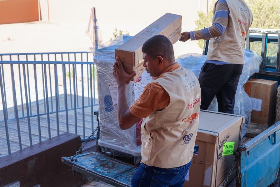 Title: Logistical operations of the EQUAL Project in action. Project personnel are documented unloading new equipment designated for partner municipalities.