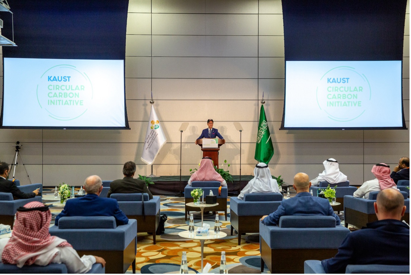 Title: Professor Tony Chan, President of KAUST, inaugurating the Circular Carbon Initiative in December 2020. The event convened national stakeholders to advance research into a circular carbon economy.