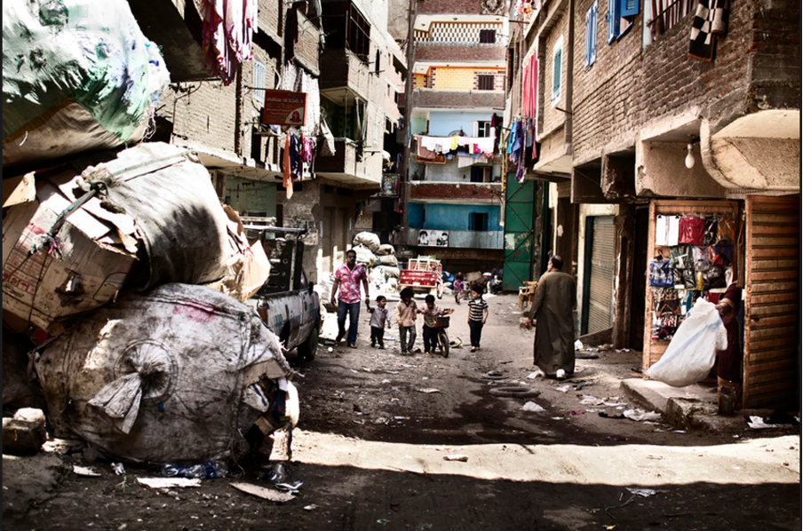 The Manshiyat Naser Recycling Community (Zabaleen), located between the Muqattam Hills and the long-established informal settlement of Manshiet Nasser in Cairo, is a rehabilitation initiative for one of the city’s largest informal settlements.1 This project is known for being home to the Zabaleen community, which is widely regarded as one of the most efficient resource recovery and waste recycling systems in the world.2 Their grassroots waste-management system has provided Cairo with recycling rates as high as 80 percent of collected municipal solid waste.3