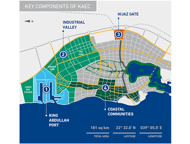 العنوان: المكونات الرئيسية لمدينة الملك عبد الله الاقتصادية (KAEC)
