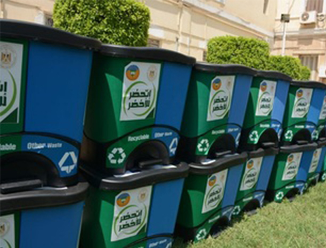 العنوان: توزيع حاويات جمع النفايات الجديدة في جميع أنحاء مصر لتعزيز الاستراتيجية الوطنية لجمع النفايات بشكل سليم.